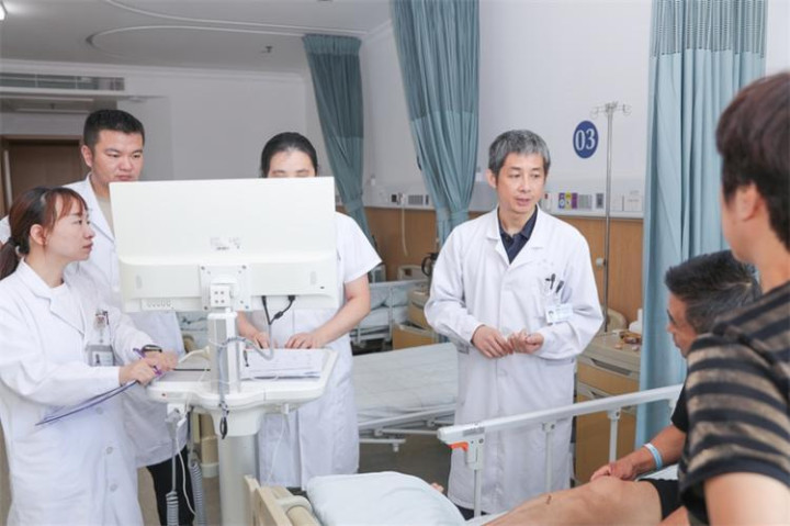 吴洪亮(中)团队讨论患者病情